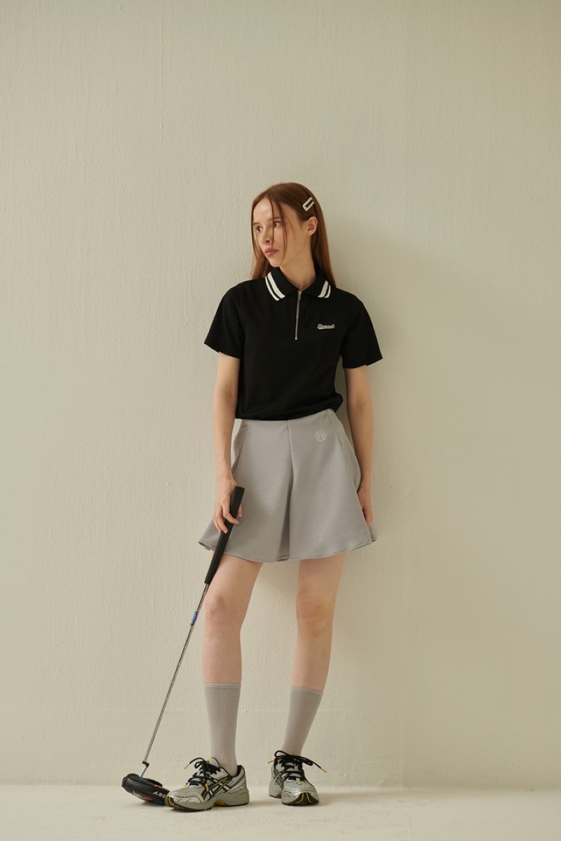 【ARTG】 氣質雙線針織拉鍊polo衫 韓國製 夏季高爾夫短袖 運動風 高爾夫服裝 網球服裝