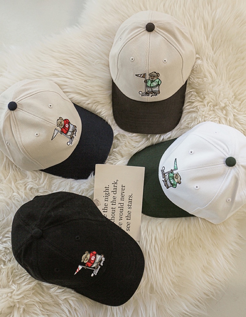 畫有打高爾夫的泰迪熊的刺繡棒球帽!!!