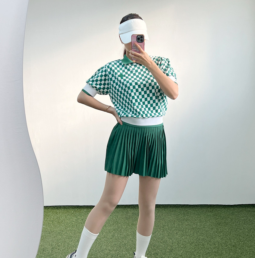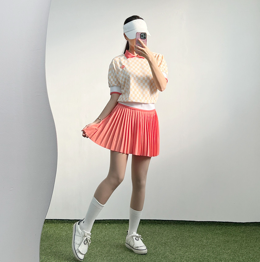【ARTG】夏日酸甜系女孩格子毛巾布polo衫 吸濕排汗 女式高爾夫服 功能性上衣