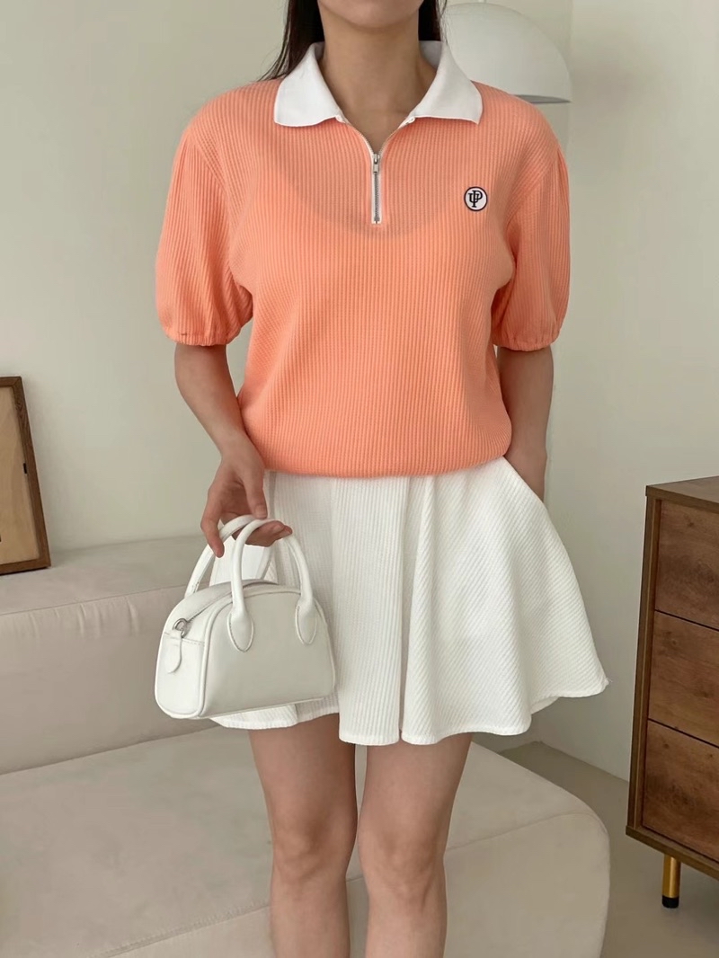 【ARTG】優雅小姐華夫格泡泡袖polo衫 柔軟舒適 運動風 高爾夫服裝 網球服裝