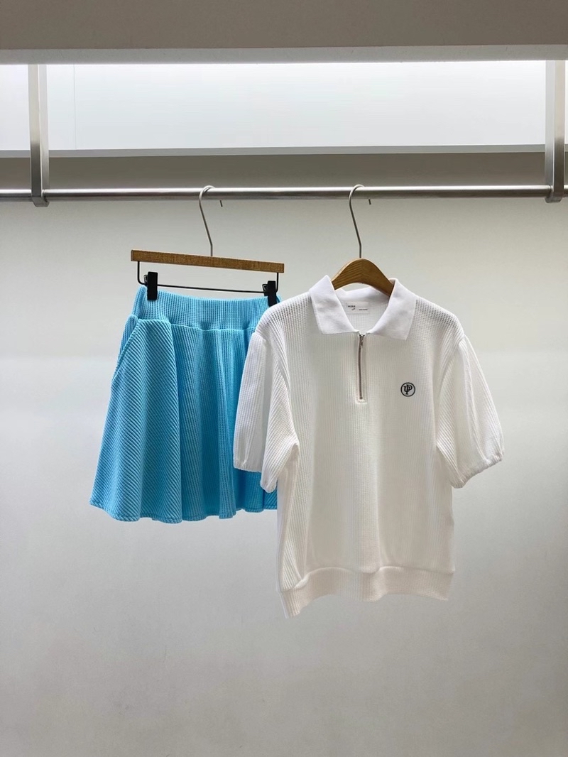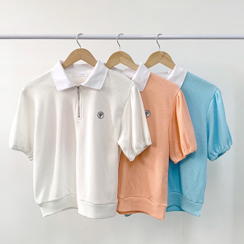 這是一款設計簡潔、色彩優美的華夫格polo衫💚