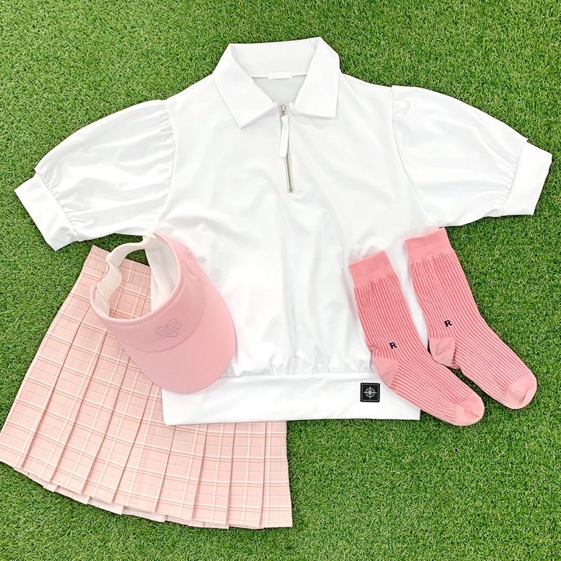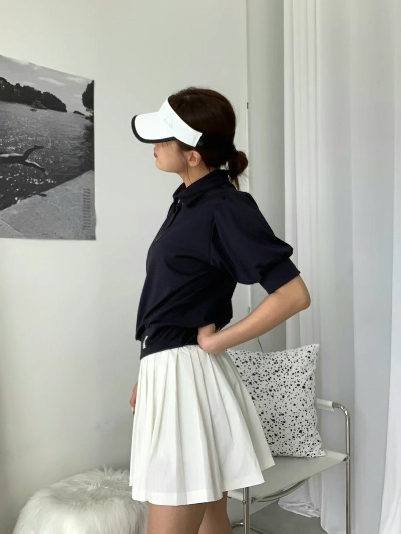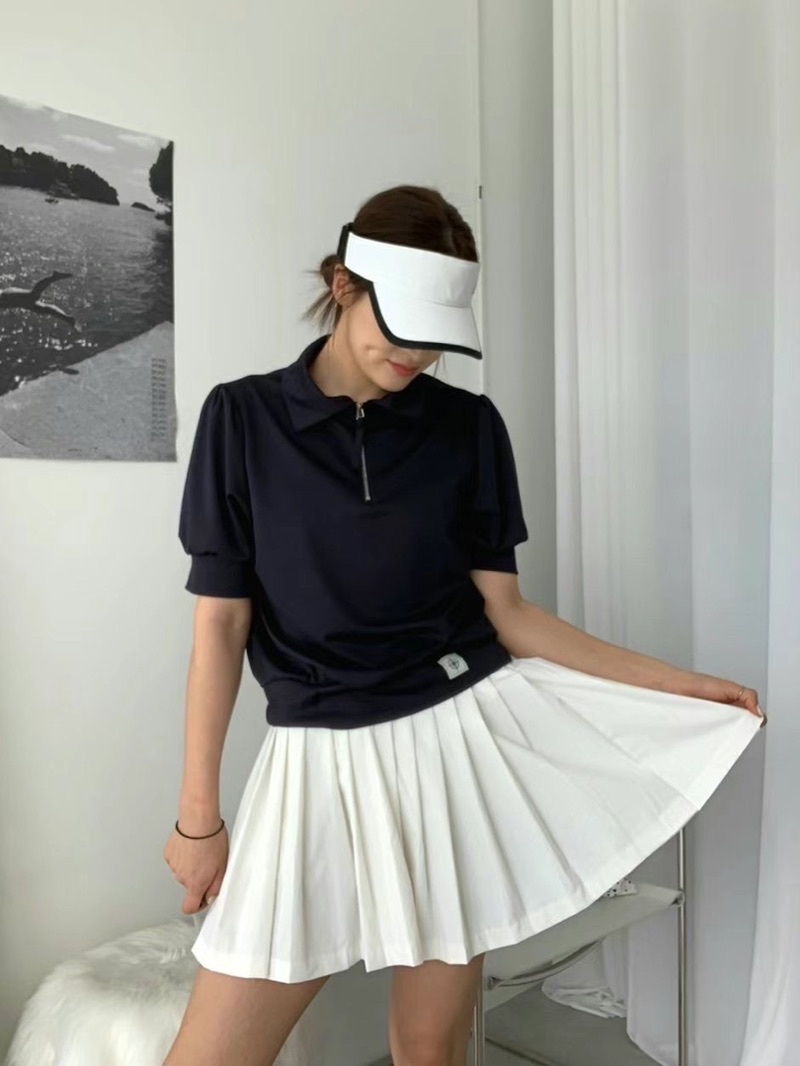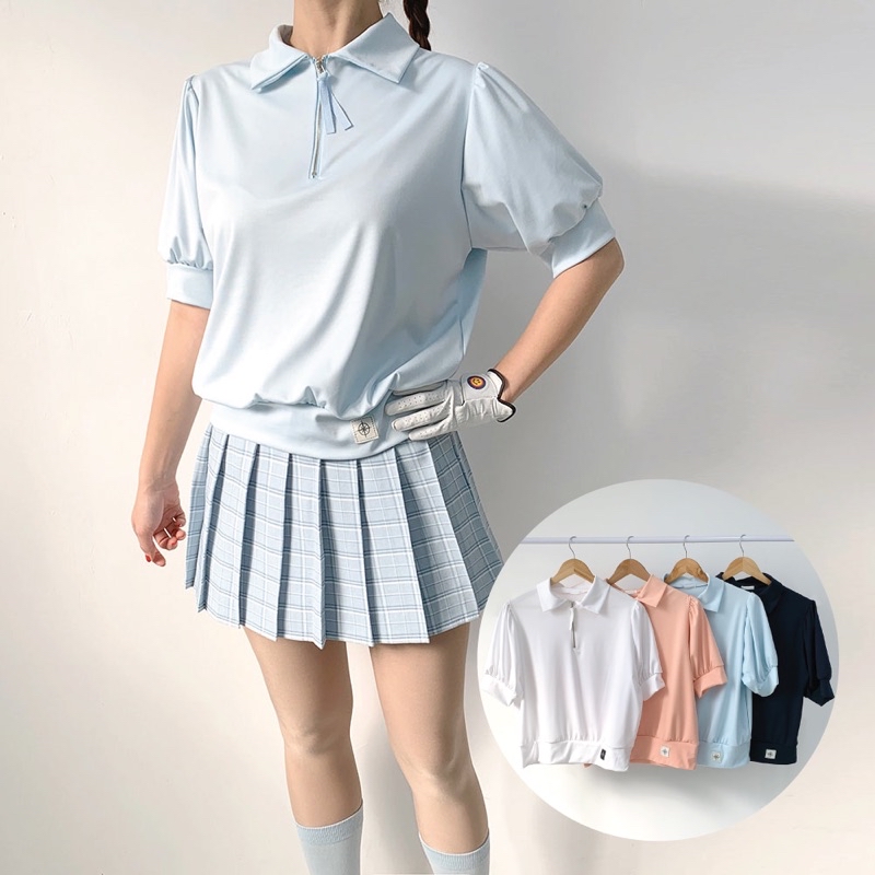 【ARTG】泡芙公主袖高爾夫拉鍊polo衫 吸汗 柔軟舒適 高爾夫服裝 網球服裝