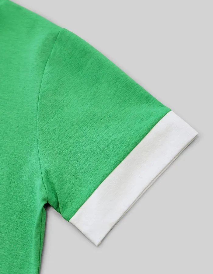 ✔ 撞色領口+袖口|清爽俐落,修飾臉型+手臂線條