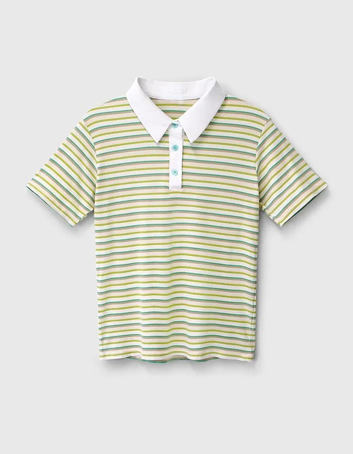 🌈 DANILOVE 夏日彩虹螺紋Polo衫
