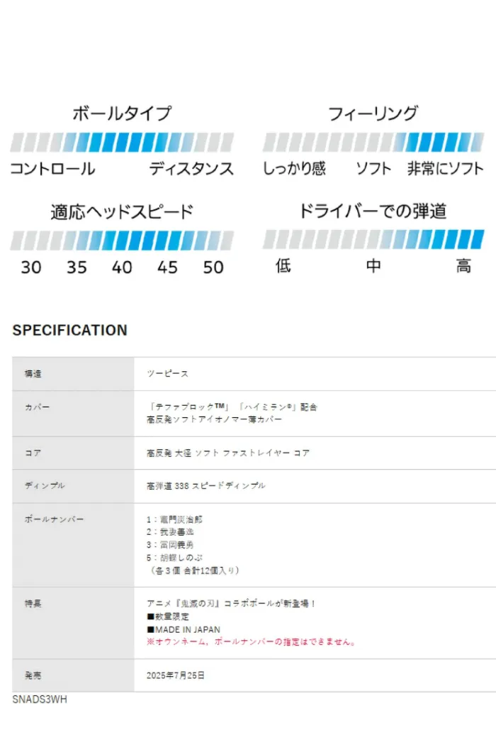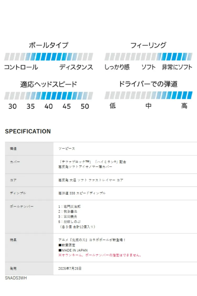 來自 DUNLOP SRIXON 系列的 AD SPEED 高爾夫球,推出限定版「鬼滅之刃角色球」!