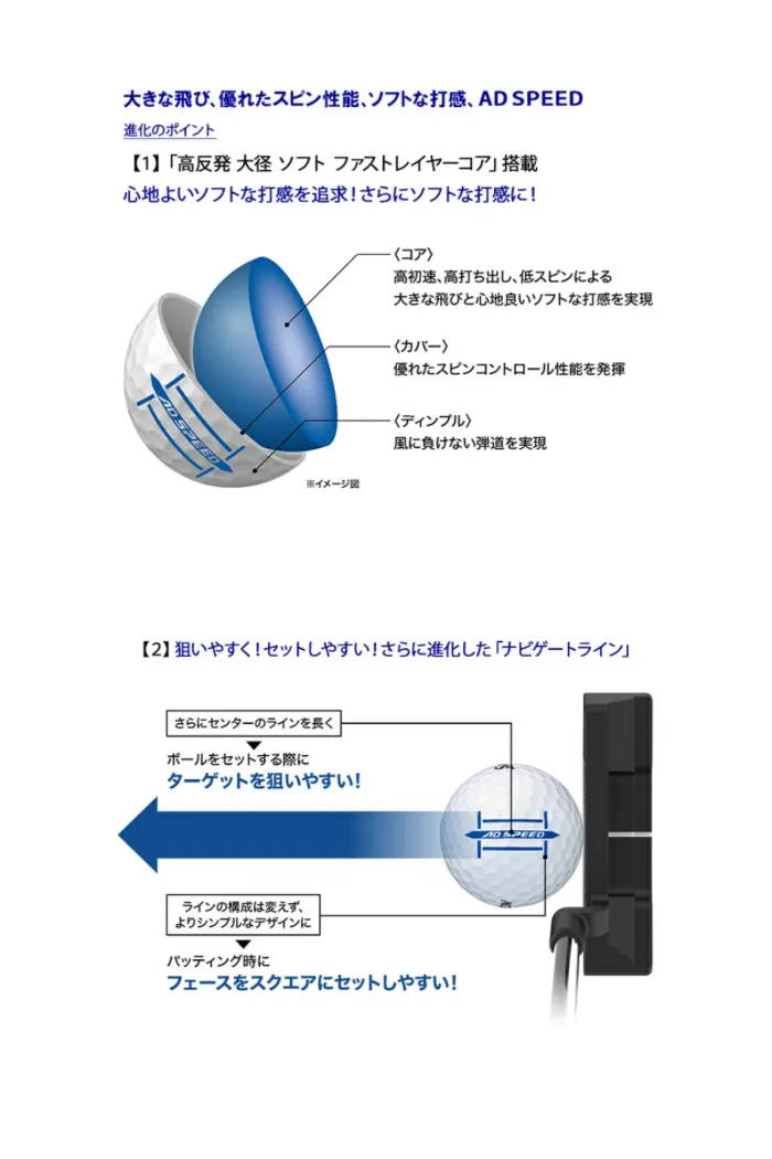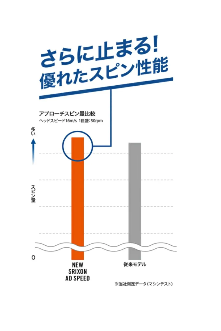 NEW SRIXON AD SPEED 擁有更高的approach spin(切球旋轉量),能在果嶺上更穩定停球。