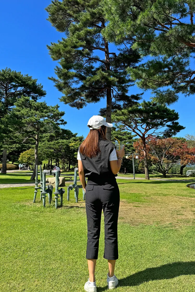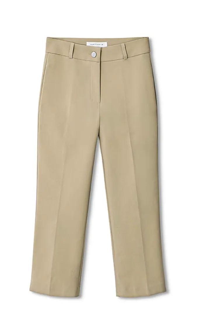 八分長度加上微微展開的褲腳設計,修飾腿型更顯修長;