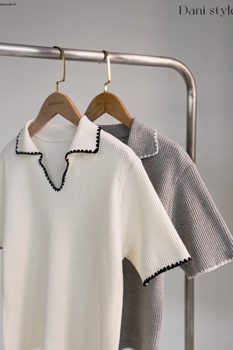 【ARTG】DANILOVE 小法式華夫格開襟翻領上衣