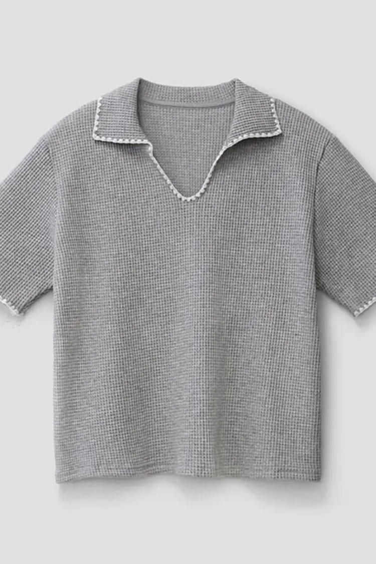 V領華夫格針織上衣,選用輕柔面料,觸感滑順舒適,