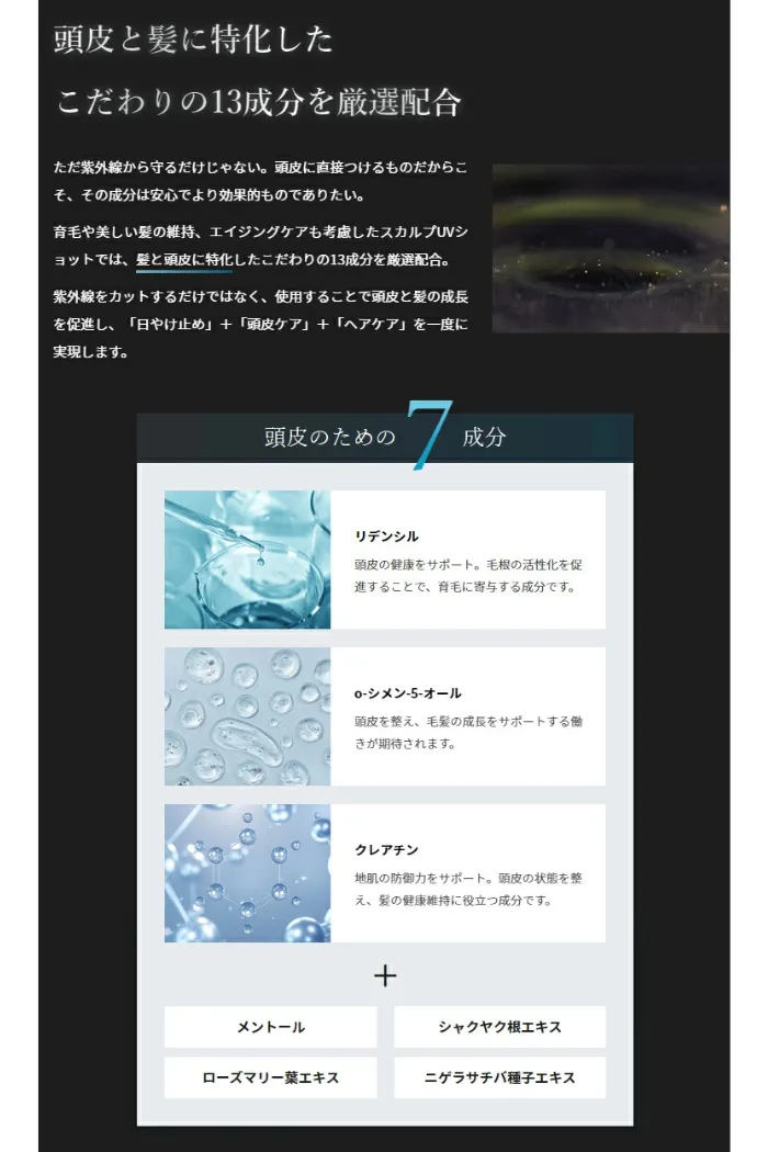 這款 Scalp UV Shot(頭皮防曬乳) 採用清爽型配方,專為長時間戶外活動設計,