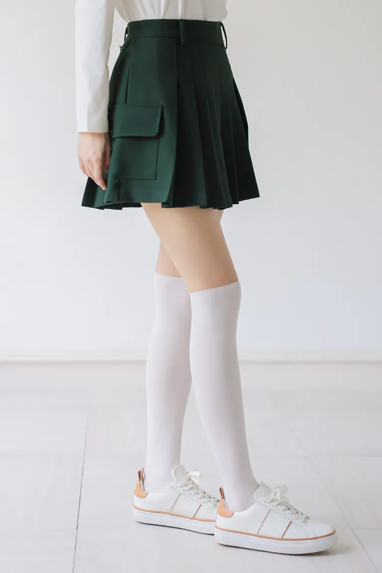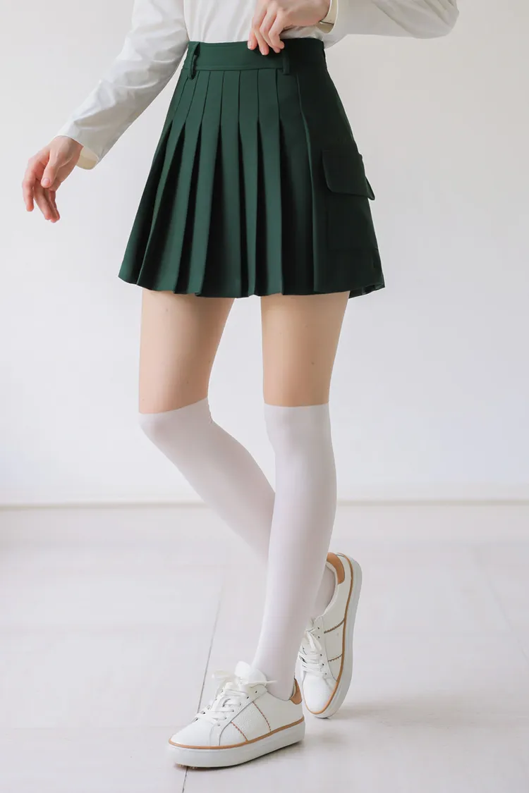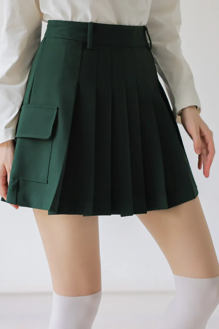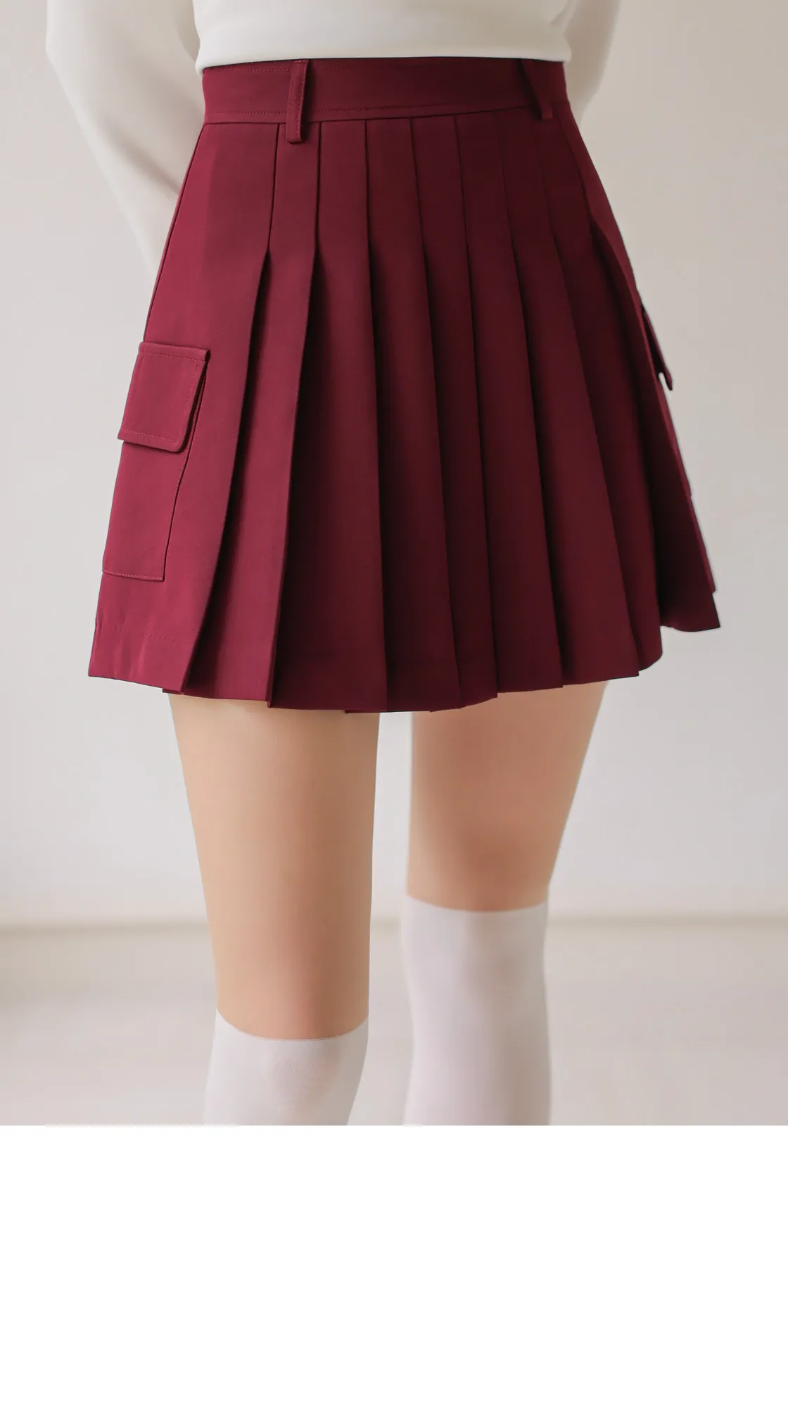 結合優雅百摺與實用大口袋設計,展現俐落與甜美兼具的穿搭魅力。
