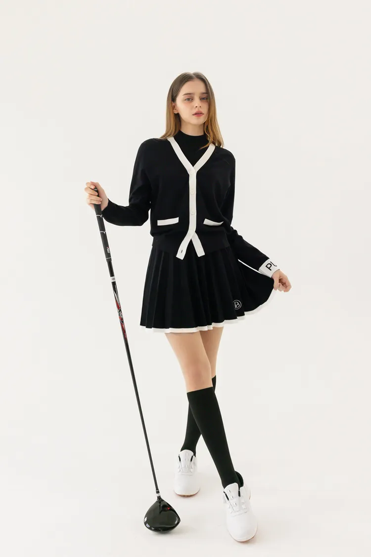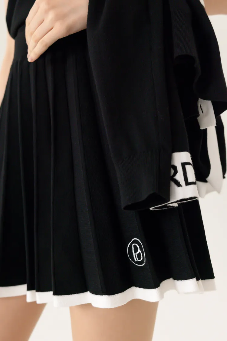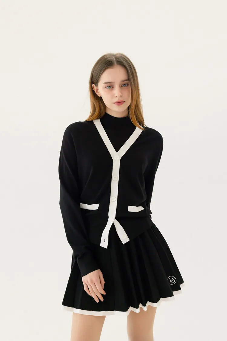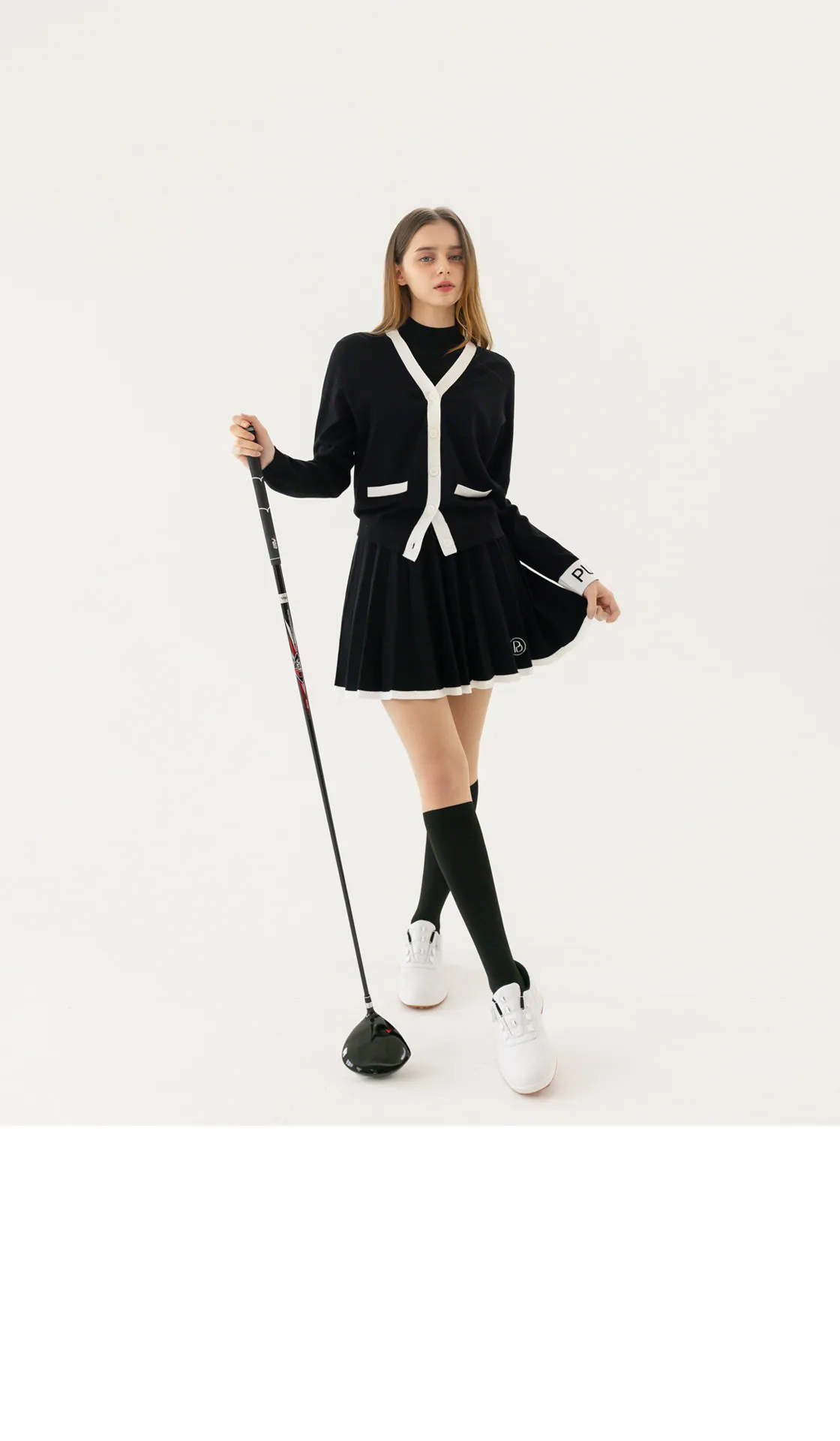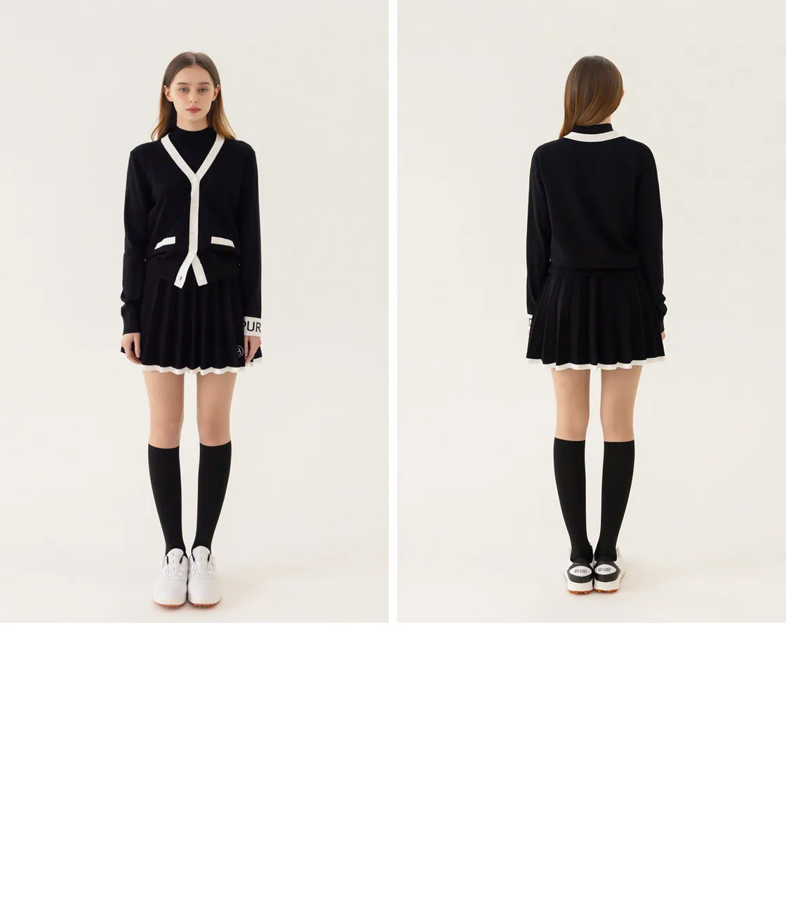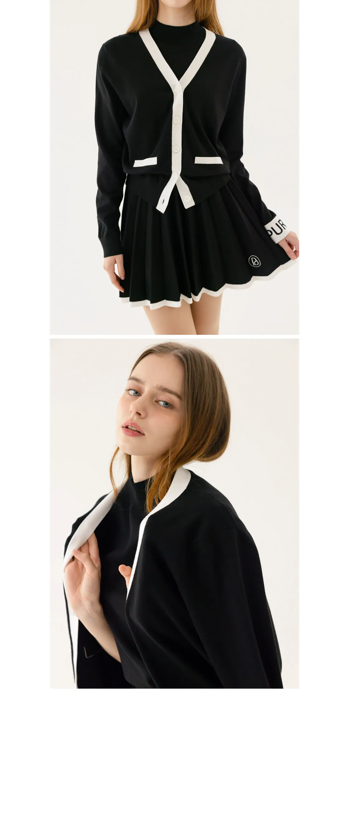 三件式設計:高領內搭+V領開襟外套+百摺短裙,組合豐富、搭配多變
