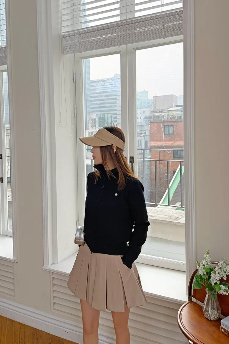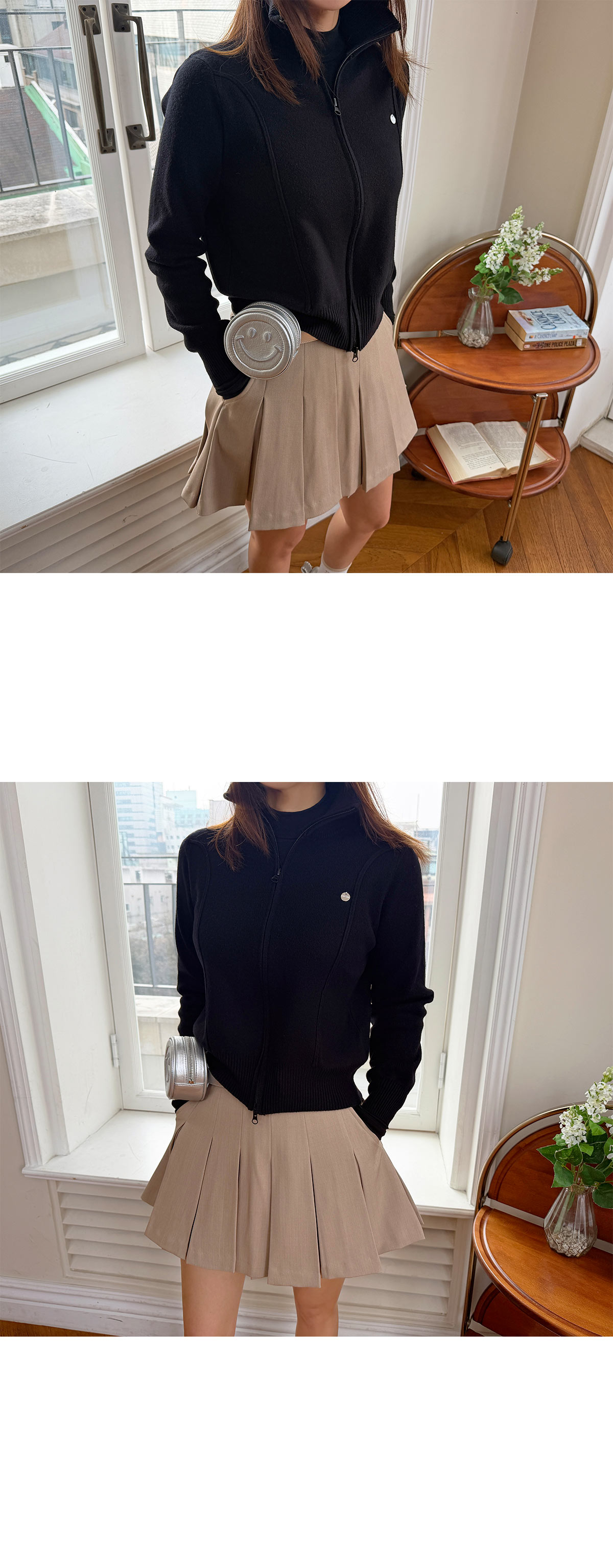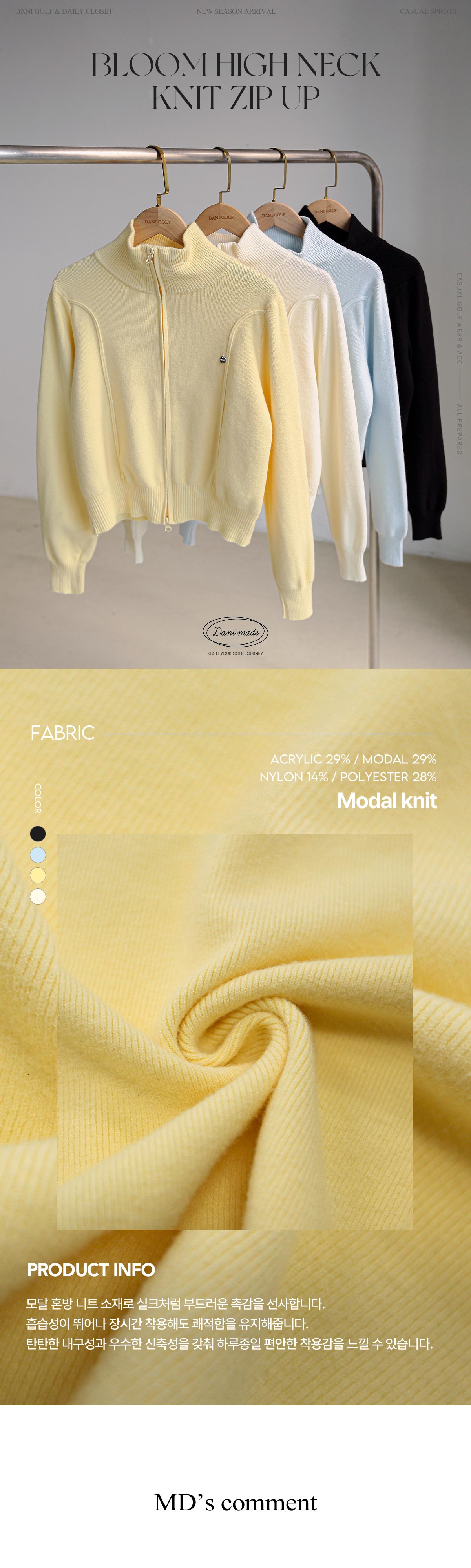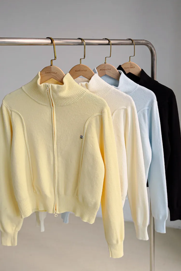 DANILOVE 柔光高領針織雙向拉鍊外套