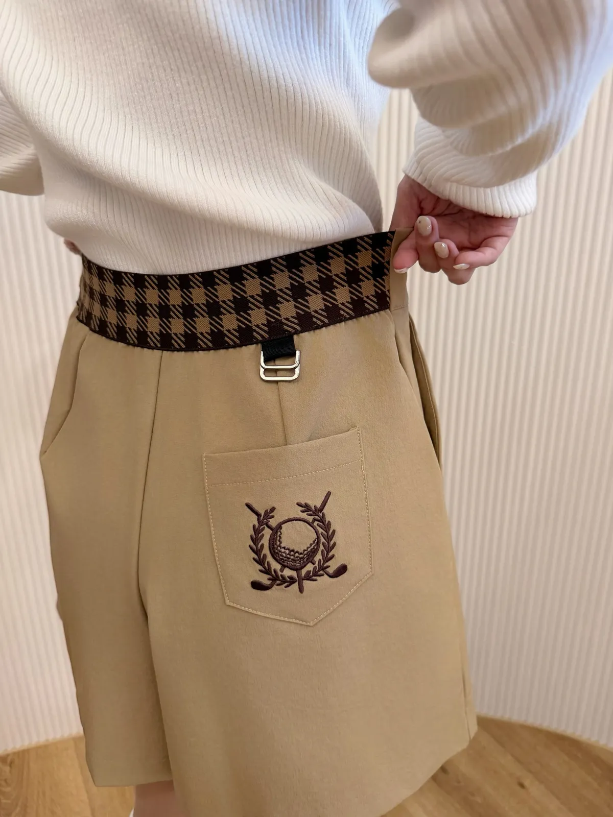 千鳥格束帶高爾夫短褲