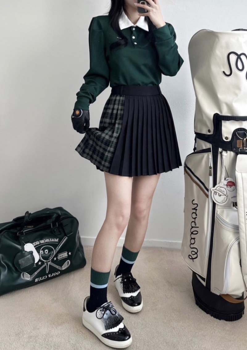 【ARTG】 經典學院風半格紋百褶高爾夫裙 超好搭 超透氣 韓國製 運動服 女裝高爾夫服